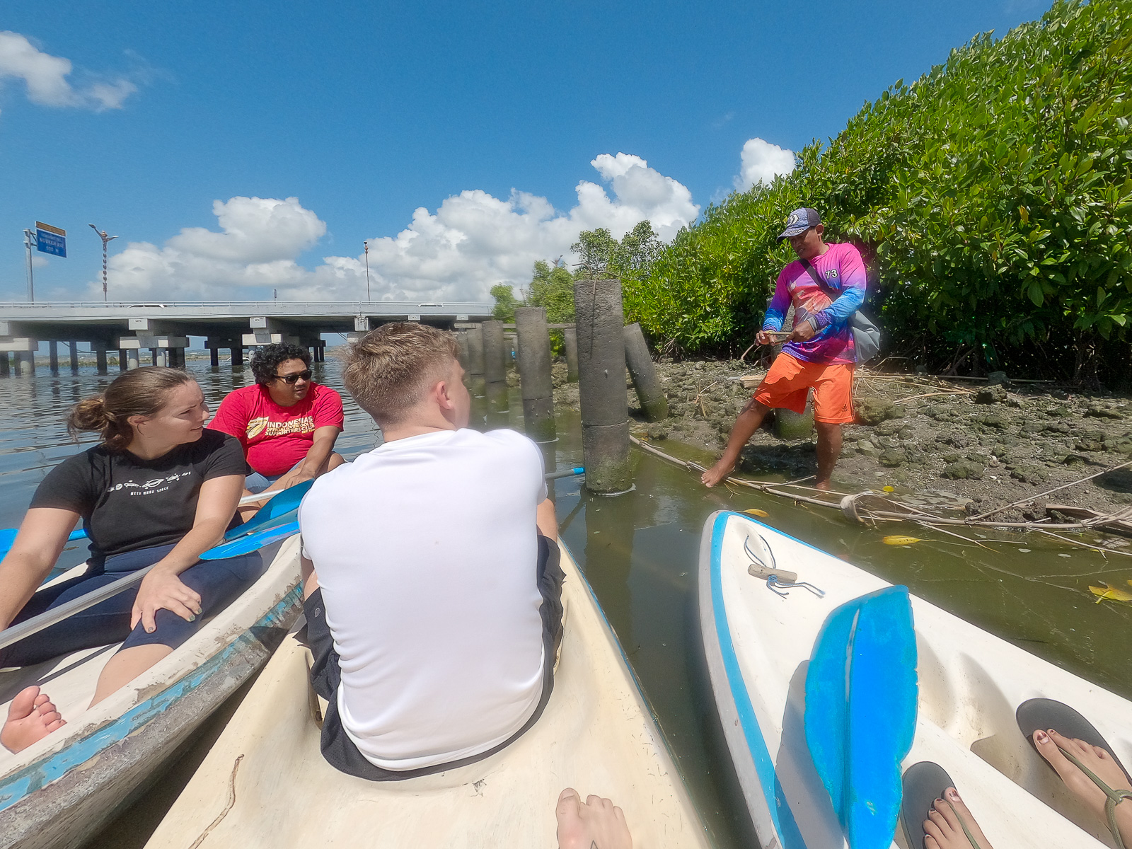 Our day started with a short drive to the south coast of Bali where we would meet our guides for the day. Hidden in plain sight and only a stone’s throw from Ngurarahi airport, was an old wooden boardwalk that would take us into the heart of a mangrove forest. The passion these guides have for the mangroves was contagious as they took us through our briefing for the day. After a quick ‘Mangrove Cocktail’ – yes, we drank mangrove juice! – we made our way down to the water to choose our kayak and your IPNLF team mate to help paddle you around the mangroves.